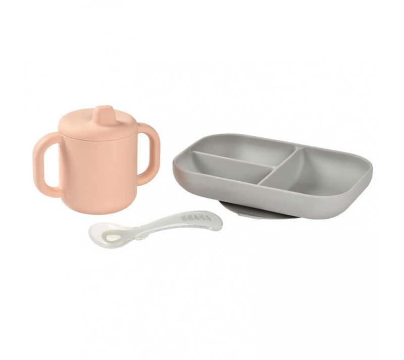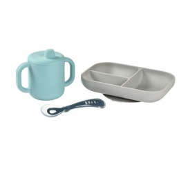 SET APRENDIZAJE DE SILICONA COMPUESTO POR UN PLATO DE COMIDA DE 3 COMPARTIMENTOS, UNA TAZA Y UNA CUCHARA 2DA EDAD.
